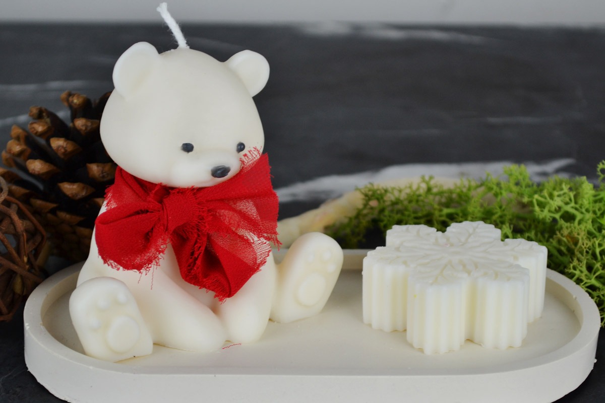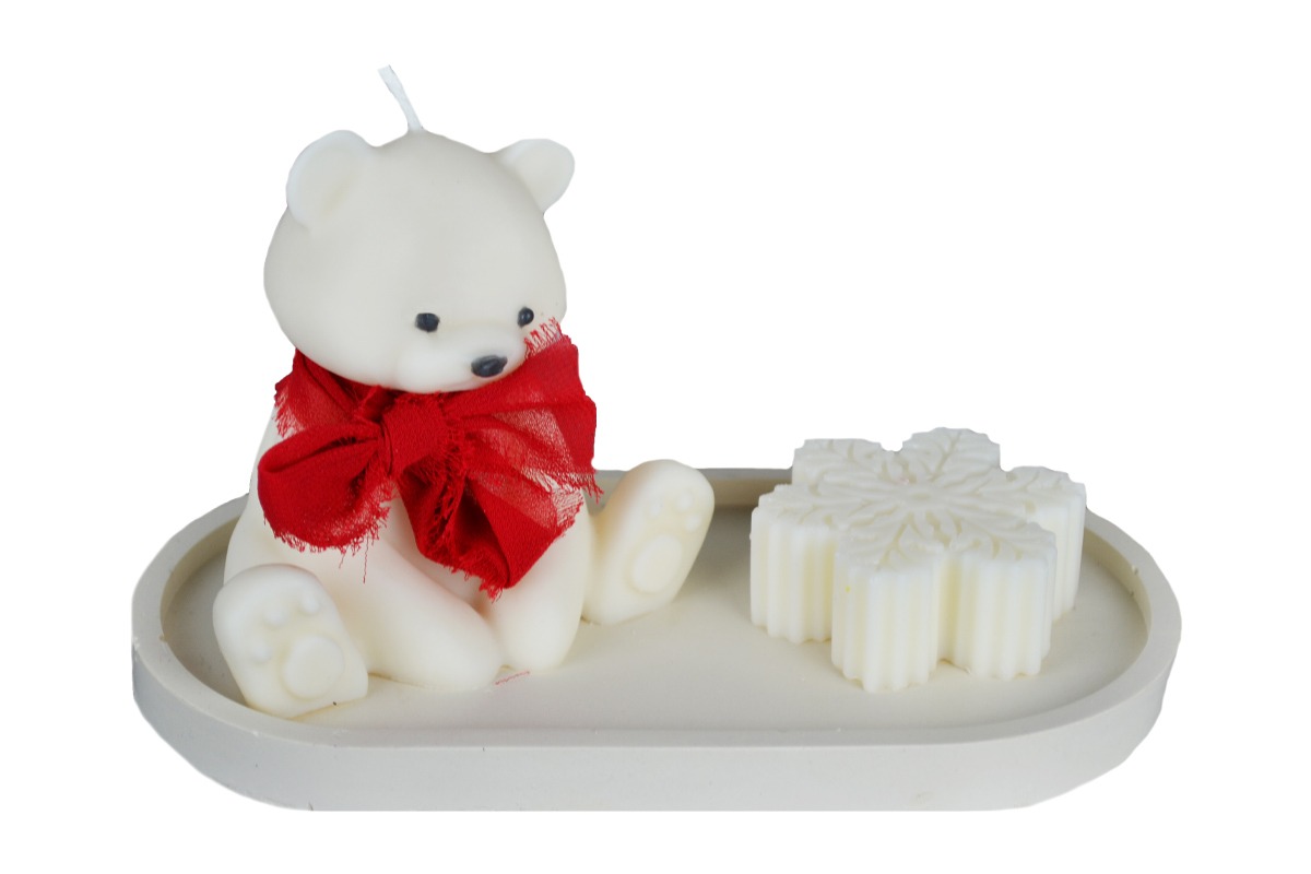 Scopri il nostro Kit Natale con Teddy, un delizioso set composto da un vassoio in gesso, una candela a forma di orsetto con un elegante fiocco rosso e una candela decorativa a forma di fiocco di neve. Perfetto per creare un’atmosfera calda e accogliente, questo kit è ideale per decorare la casa o come regalo speciale per le feste.
